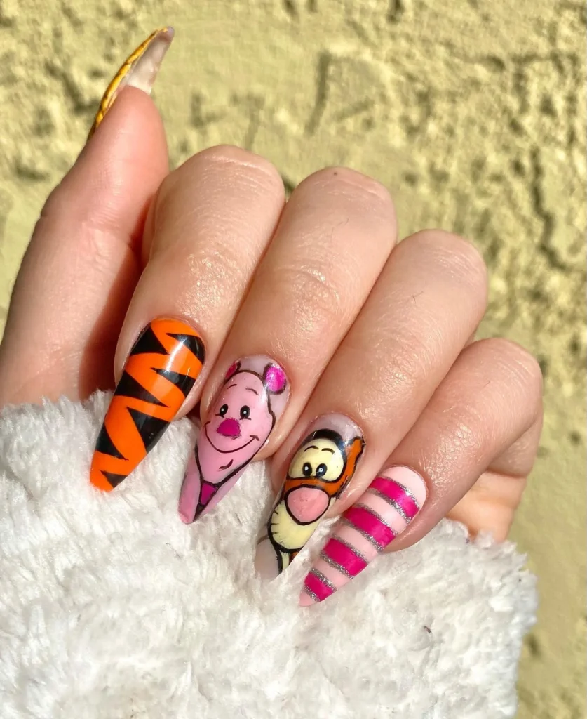 #4. Colorful Winnie the Pooh and Friends Nail Art