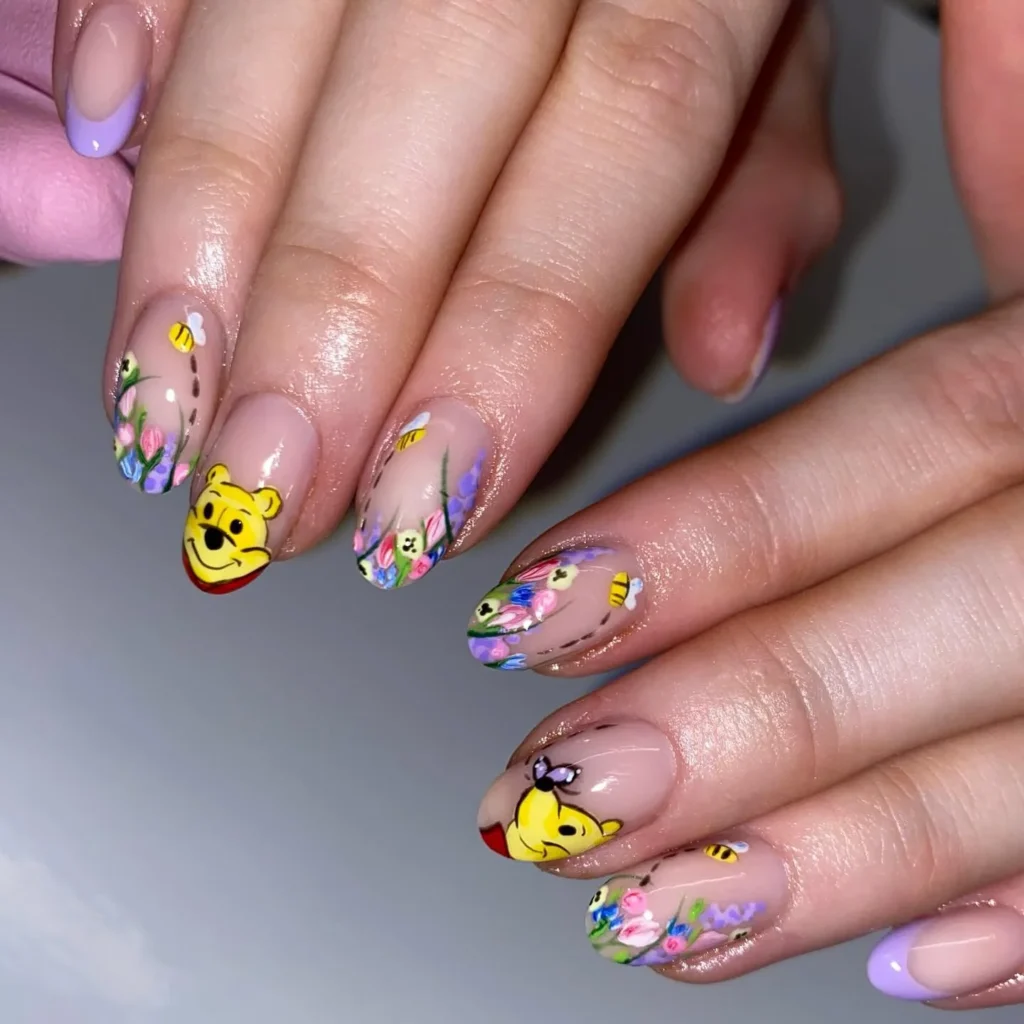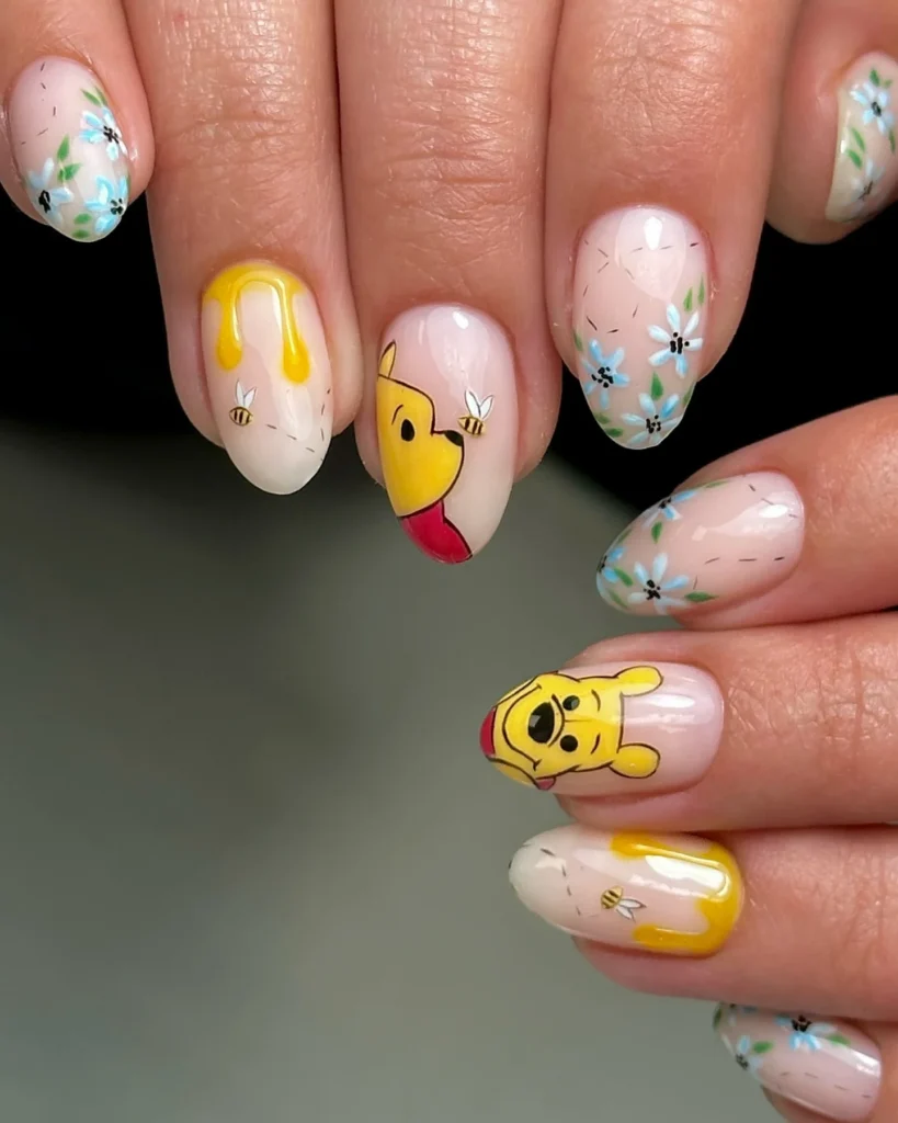 #1. Winnie the Pooh and Floral Honey Nail Art